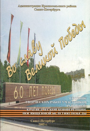 Во славу Великой Победы : сборник творческих работ участников районной краеведческой конференции, посвященной 60-летию Победы в Великой Отечественной войне / сост. Л. А. Федорова [и др.]. — Санкт-Петербург : [б. и.], 2005. – 55 с.