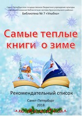 Самые теплые книги о зиме : рекомендательный список / отв. за выпуск Е. Н. Шанина ; подбор литературы Л. В. Дурягина ; сост. Н. М. Беликова. — Санкт-Петербург : Библиотека №7 СПб ГБУК «ЦБС Красносельского района», 2018. — 35 с.