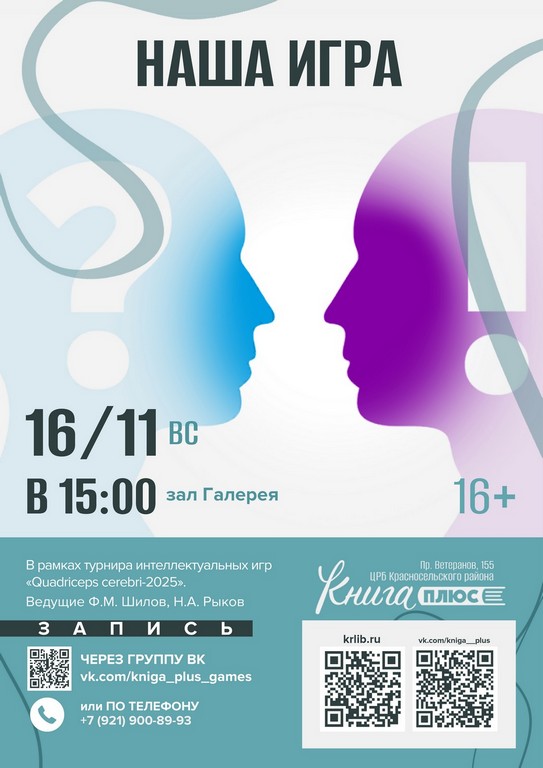 Запись на игры в группе библиотеки ВКонтакте: оставьте комментарий под постом с афишей игротеки в формате: [название игры] - [количество участников]. Ждите подтверждения от библиотеки в ответном комментарии 4 января.