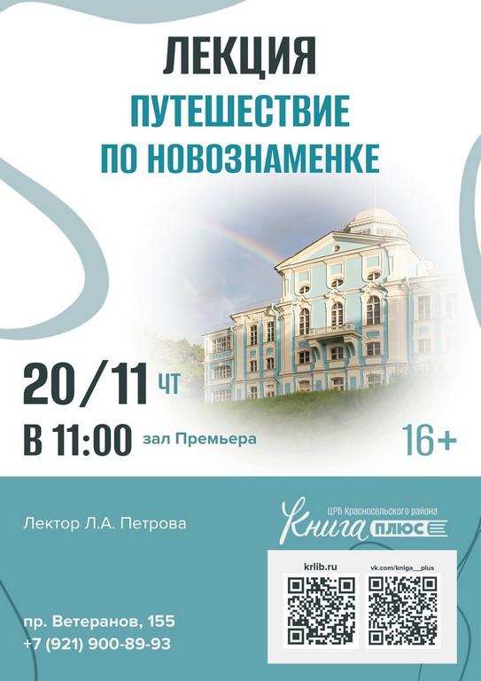 18 января (вс.) в 16:00 – авторский вечер поэта и прозаика Анжелики Лавицкой – «Питер счастье». Зал «Премьера» (16+)