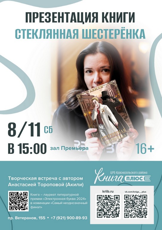 17 января (сб.) в 15:00 – творческая встреча «Путешествие души» с победительницей конкурса «ПОЙ!эзия – 2024» Дарьей Шишкиной. Зал «Премьера» (12+)