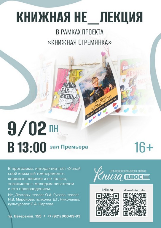 Запись на мероприятия откроется 9 февраля под постом с афишей фестиваля в группе библиотеки ВКонтакте (https://vk.com/kniga__plus)