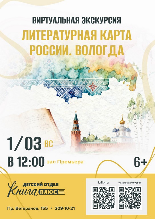 01.03.2026 12:00 Виртуальная экскурсия «Литературная карта России. Вологда», 6+,