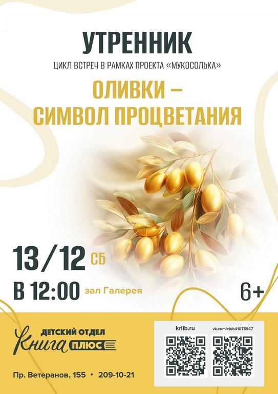 13.12.2025 12:00 Утренник «Оливки — символ процветания», цикл встреч в рамках проекта «Мукосолька», 6+, зал Галерея