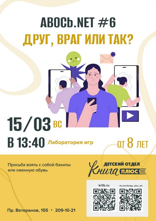 15.03.2026 13:30 Авось.net#6 «Друг, враг или так?», рекомендованный возраст участников от 8 лет, зал Лаборатория игр