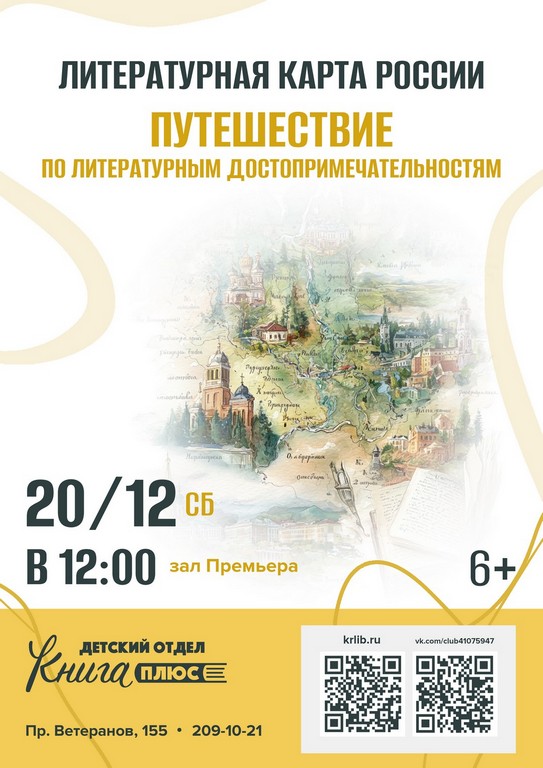 20.12.2025 12:00 «Литературная карта России. Путешествие по литературным достопримечательностям», 6+, зал Премьера