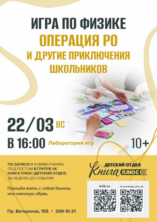 22.03.2026 16:00 Настольная игра по физике «Операция РО и другие приключения школьников», рекомендованный возраст участников от 10 лет, зал Лаборатория игр,