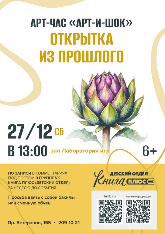 27.12.2025 13:00 Арт-час АРТ-И-ШОК «Открытка из прошлого», 6+, зал Галерея,