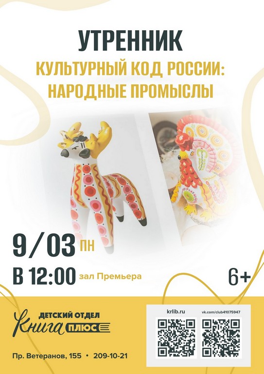 09.03.2026 12.00 Утренник «Культурный код России: народные промыслы», 6+, зал Премьера