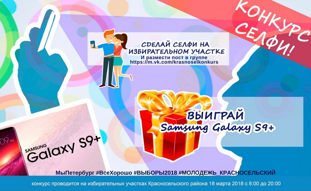 1) 18 марта с 8:00 до 20:00 сделай селфи на любом избирательном участке Красносельского района Санкт-Петербурга, выражающее твою активную гражданскую позицию, и размести пост на стене группы БудущеЗаНами_Красносельский