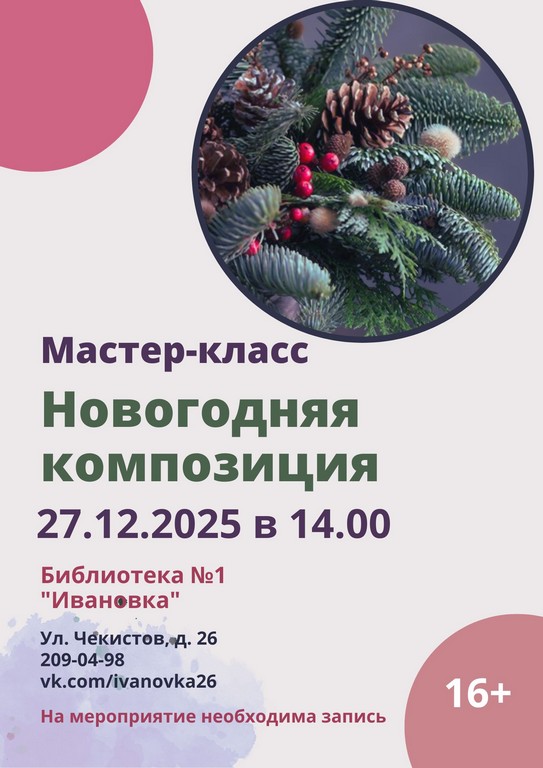27 декабря / 14:00 – мастер-класс «Новогодняя композиция» (16+).