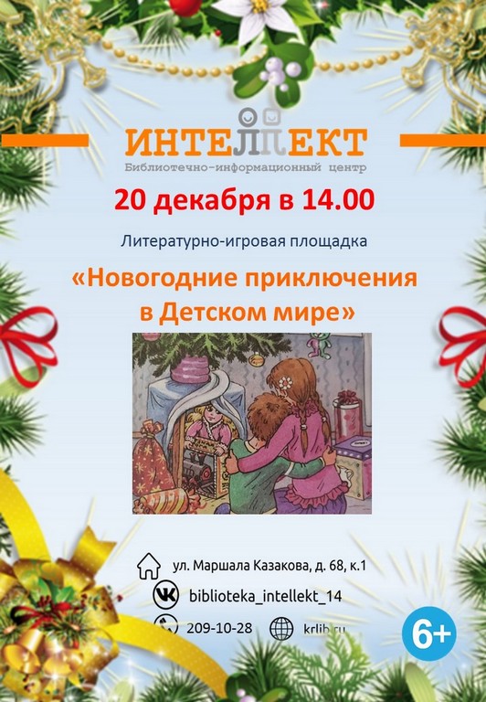 Сб 20.12 / 14.00-15.00 – Литературная игровая площадка «Новогодние приключения в Детском мире», 6+