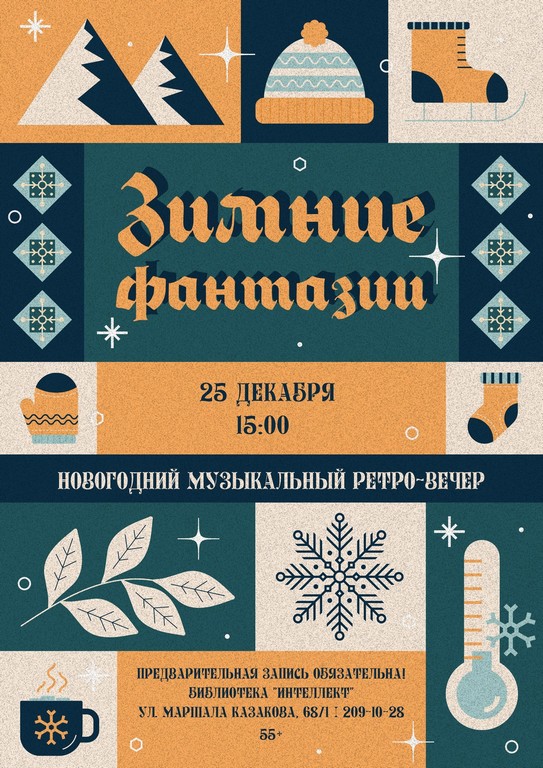 Чт 25.12 / 15.00-16.00 – Новогодний музыкальный ретро-вечер «Зимние фантазии», 55+