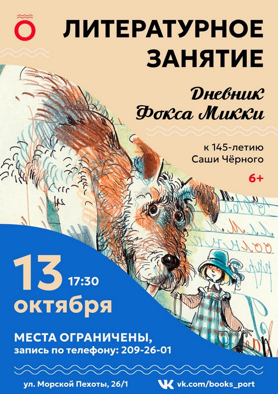 17:30 Литературное занятие по книге «Дневник Фокса Микки» к 145-летию Саши Черного 6+