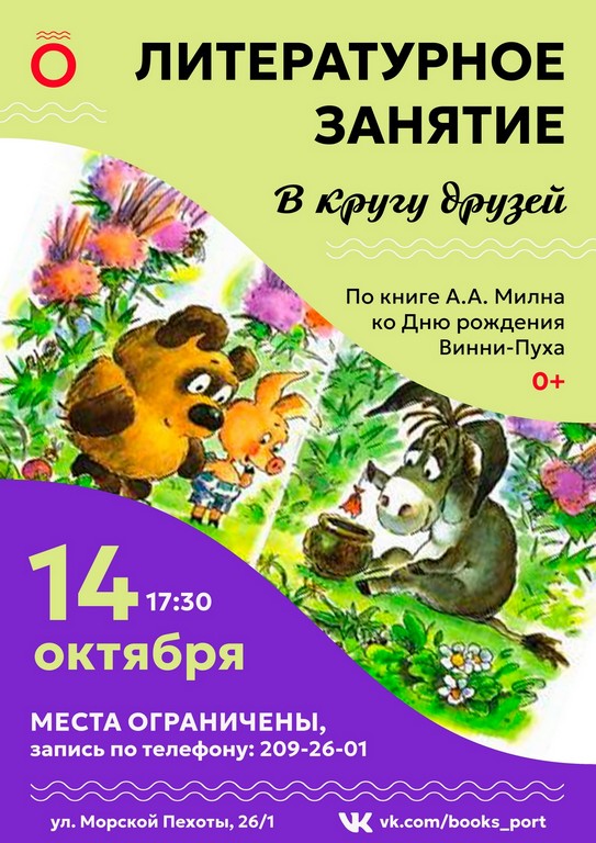 17:30 Литературное занятие «В кругу друзей» по книге А.А. Милна «Винни-пух и все-все-все» ко Дню рождения Винни-Пуха 0+
