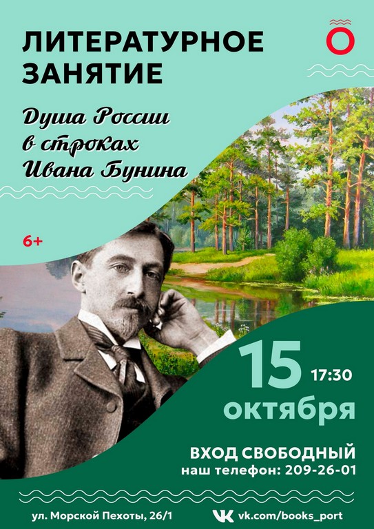 17:30 Литературное занятие «Душа России в строках Ивана Бунина» к 155-летию со Дня Рождения писателя. Литературное занятие 6+