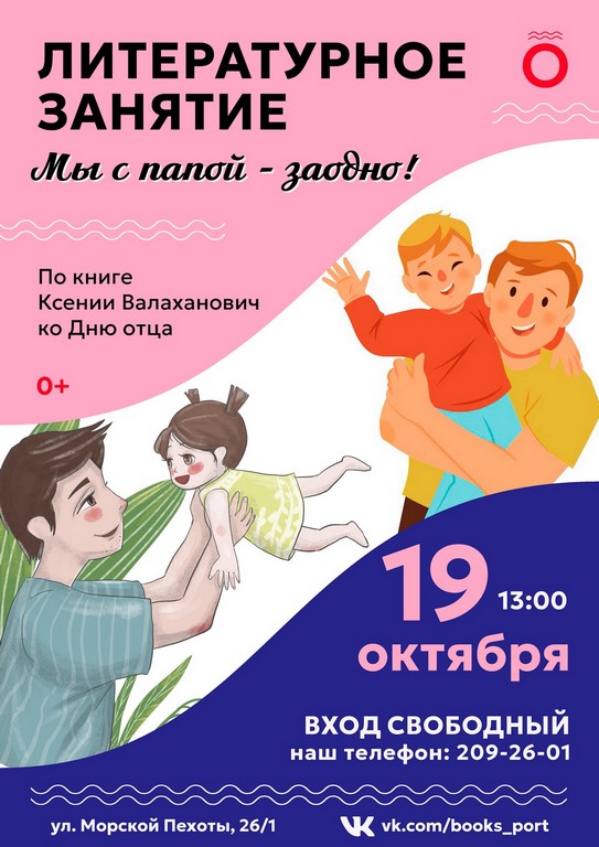 13:00 Литературное занятие ко Дню отца по книге Ксении Валаханович «Мы с папой – заодно!» 0+