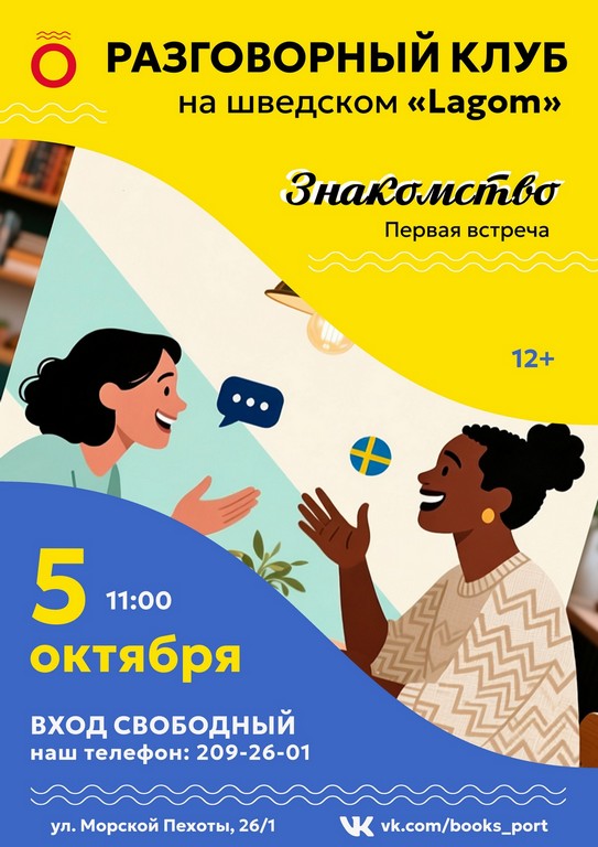 - 11:00 Разговорный клуб на шведском языке «Lagom» 12+