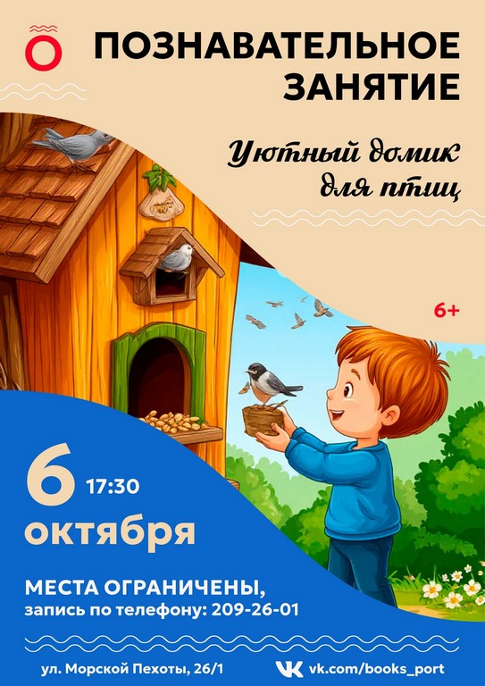 17:30 Познавательное занятие «Уютный домик для птиц» ко Всемирному дню охраны мест обитания 6+