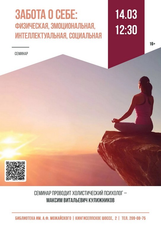 14.03 в 12:30 (сб.) семинар «Забота о себе: физическая, эмоциональная, интеллектуальная, социальная»