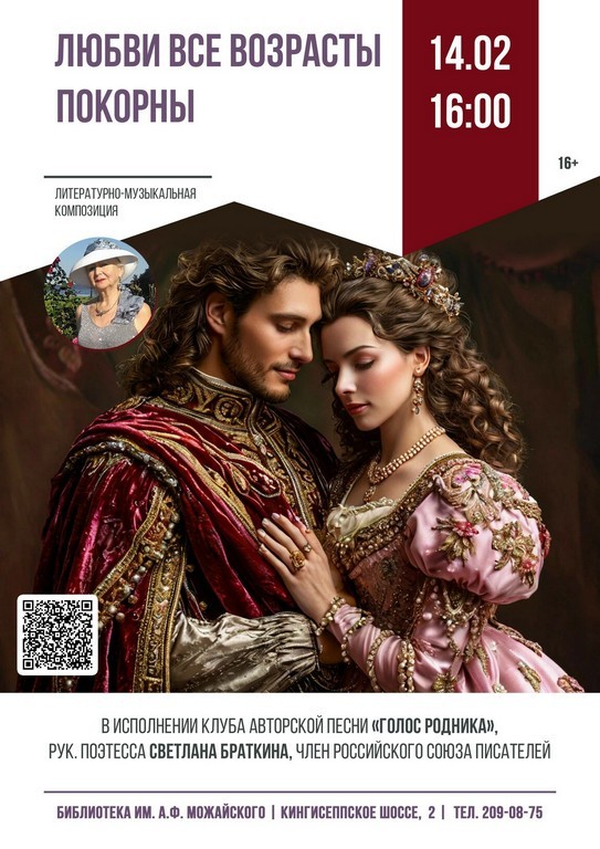 14.02 в 16:00 (сб.) литературно-музыкальная композиция «Любви все возрасты покорны»