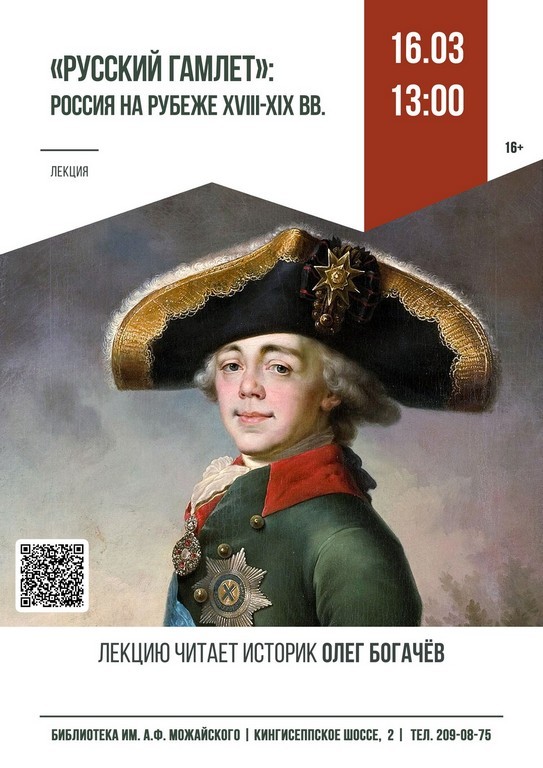 16.03 в 13:00 (пн.) лекция «Русский Гамлет»: Россия на рубеже XVIII-XIX вв.