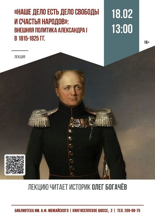 18.02 в 13:00 (ср.) лекция «Наше дело есть дело свободы и счастья народов»: внешняя политика Александра I в 1815-1825 гг.