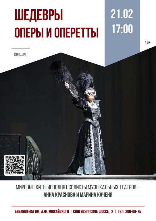 21.02 в 17:00 (сб.) концерт «Шедевры оперы и оперетты»: для вас мировые хиты исполнят солисты музыкальных театров – Анна Краснова и Марина Каченя (16+)