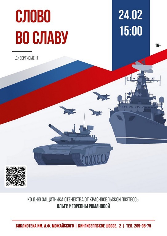 24.02 в 15:00 (вт.) дивертисмент «Слово во славу»: ко Дню Защитника Отечества