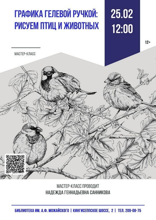 25.02 в 12:00 (ср.) мастер-класс «Графика гелевой ручкой: рисуем птиц и животных»