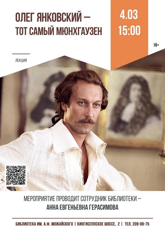 4.03 в 15:00 (ср.) лекция «Олег Янковский — тот самый Мюнхгаузен»