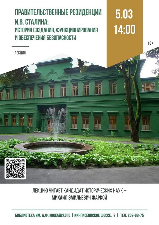 5.03 в 14:00 (чт.) лекция «Правительственные резиденции И.В. Сталина: история создания, функционирования и обеспечения безопасности»
