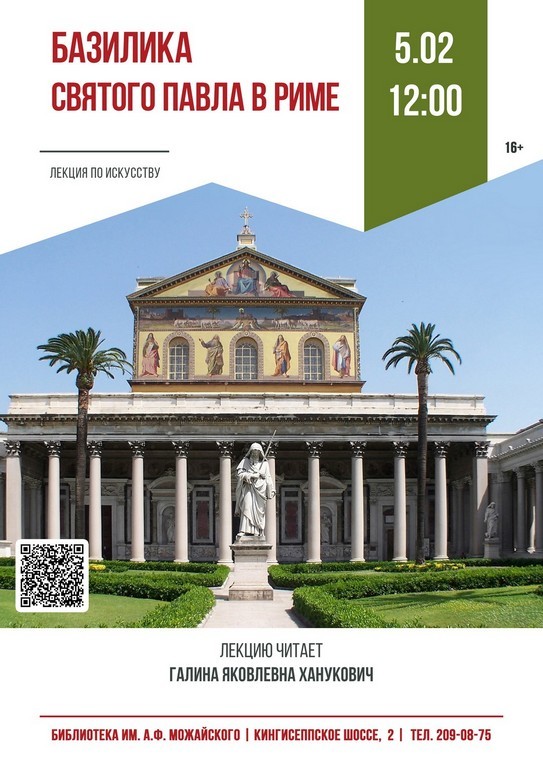 05.02 в 12:00 (чт.) лекция по искусству «Базилика Святого Павла в Риме»