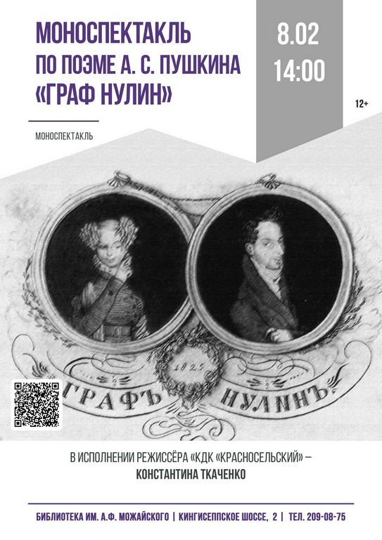 08.02 в 14:00 (вс.) моноспектакль по поэме А. С. Пушкина «Граф Нулин»